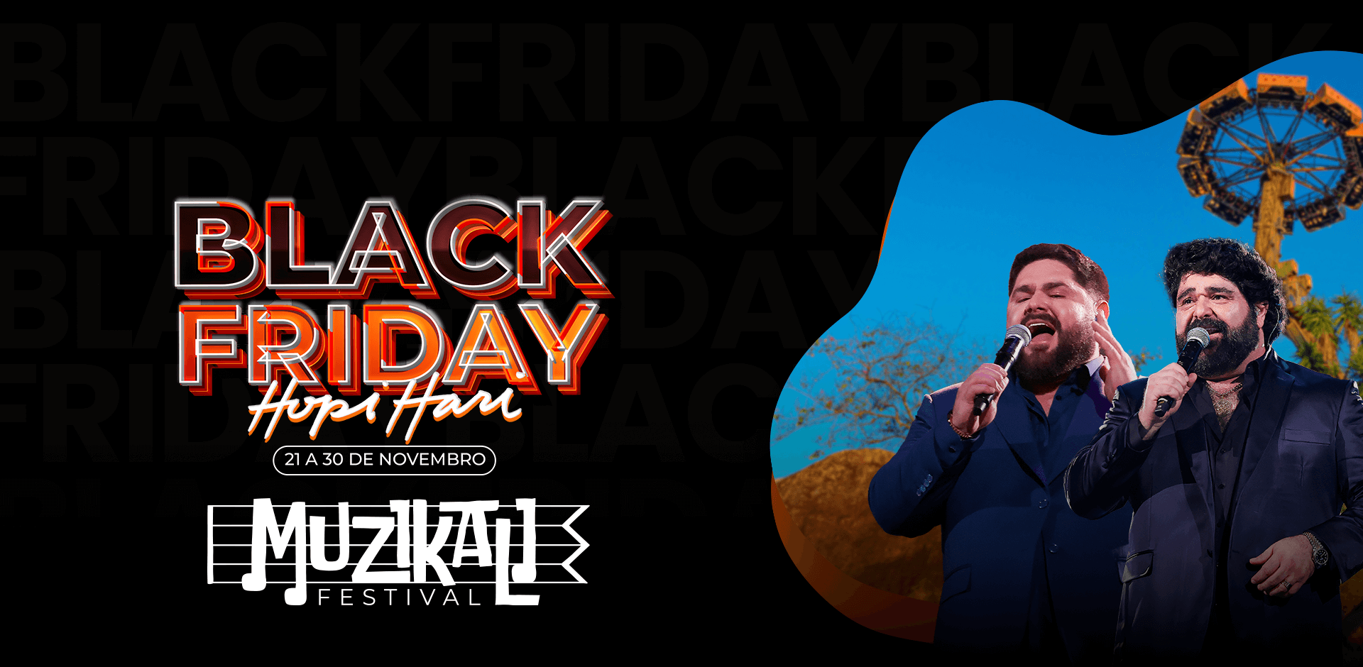 Do assunto música e diversão, o Hopi Hari entende bem. Pra você que também é apaixonado por curtir o País Mais Divertido do Mundo e encerrar a noite com aquele showzão, apresentamos o Musikali Festival, o novo festival de música do Hopi Hari. A primeira edição sertaneja acontece no dia 23 de maio de 2026, e o lote de lançamento não poderia ficar fora da Black Friday. Este passaporte garante o acesso a todas as mais de 40 atrações do Hopi Hari (exceto pagas à parte), além de toda a programação sertaneja do festival. Tudo em um só dia, e pagando pouco por isso!